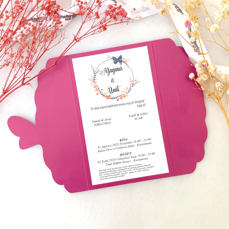 1000 ADET DİK KELEBEKLİ DAVETİYE - KLB-003