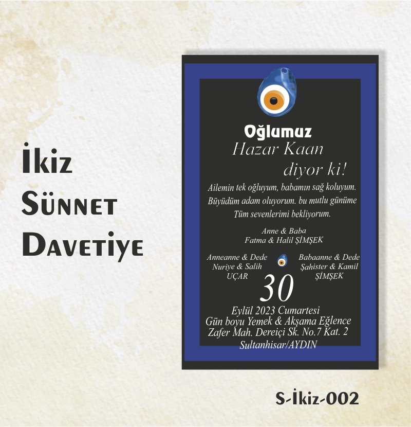 1000 ADET İKİZ SÜNNET DAVETİYE / S-İKİZ-002