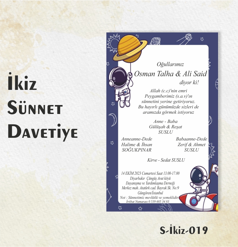 1000 ADET İKİZ SÜNNET DAVETİYE / S-İKİZ-017